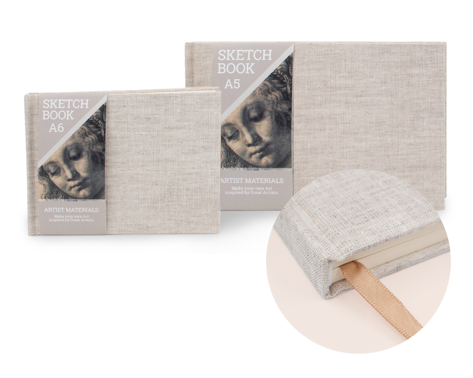 A5, 40 sheets, Linen hardcover Drawing Book with banderole